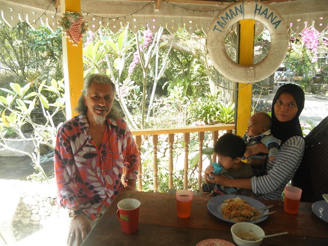 Ini pula gambar isteri dan anak-anak bersama penulis buku politik terkenal. S.H. Alattas atau Pak Habib di kediamannya di Kampung Janda Baik, Pahang keesokan hari, Ahad 1 Julai. Walaupun saya pernah menetap di sini (ada beberapa buah rumah dalam satu kawasan taman 8 ekar) selama kira-kira 3 tahun dan pernah menolong Pak Habib menulis, menyunting dan menyelidik isi beberapa buah bukunya saya dan isteri lebih selesa bermalam di surau berdekatan apabila berada di kawasan tanah tinggi rezab orang Melayu ini.